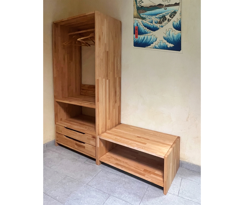 Armadio aperto + ripiano in lamellare di faggio (2 moduli)