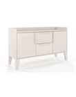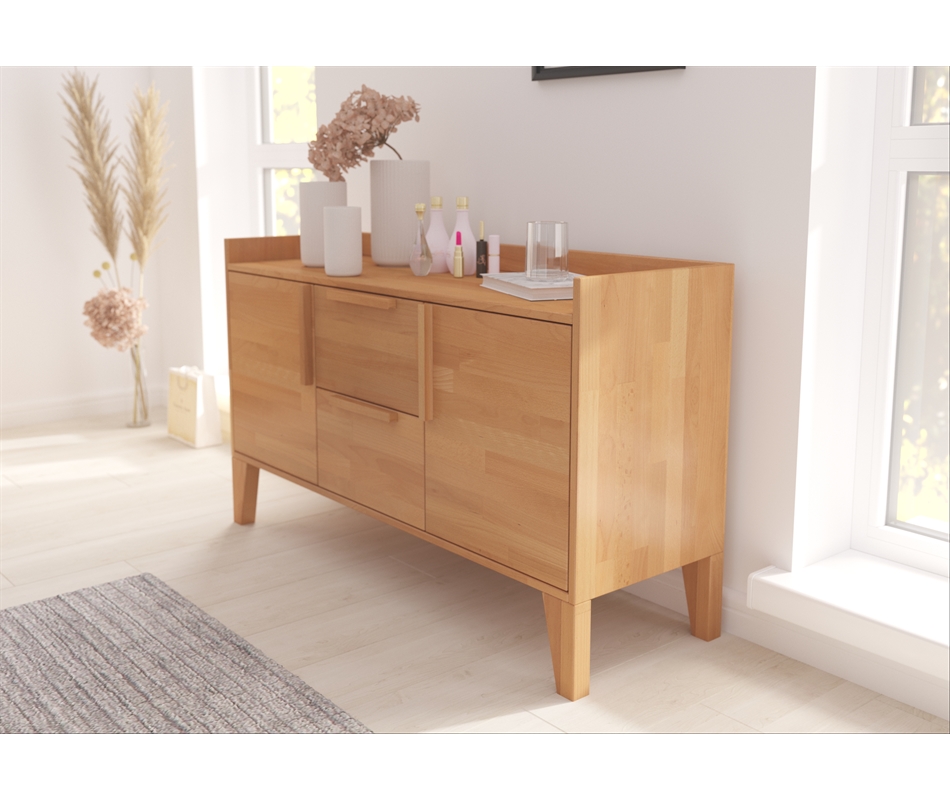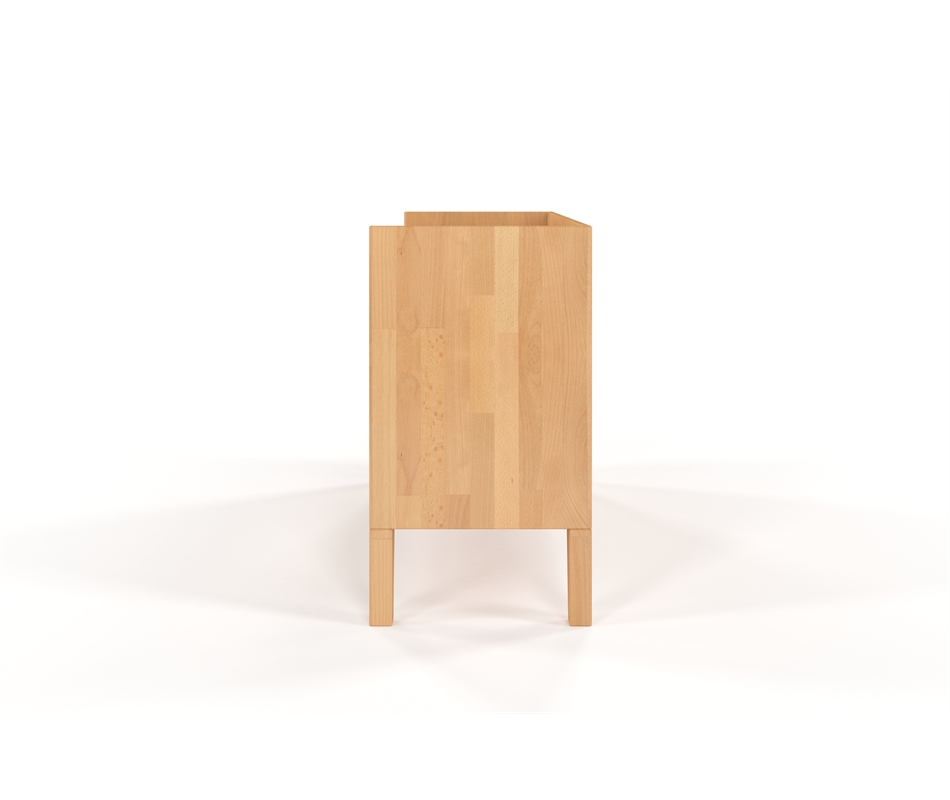 Cassettiera in lamellare di faggio massiccio . La tecnica del lamellare permette di eliminare nodi ed impurità, creando un prodotto dall'aspetto quanto più possibile omogeneo e uniforme. Altezza complessiva 72 cm, profondità 40 cm, lunghezza 121 cm. Mobile dipinto con vernici ecologiche. Colori disponibili: naturale, sbiancato, noce, palissandro. Cassettiera con parti metalliche all'interno della struttura. Le guide sono munite di ammortizzatori e sistema di chiusura silenzioso. I pannelli infe...