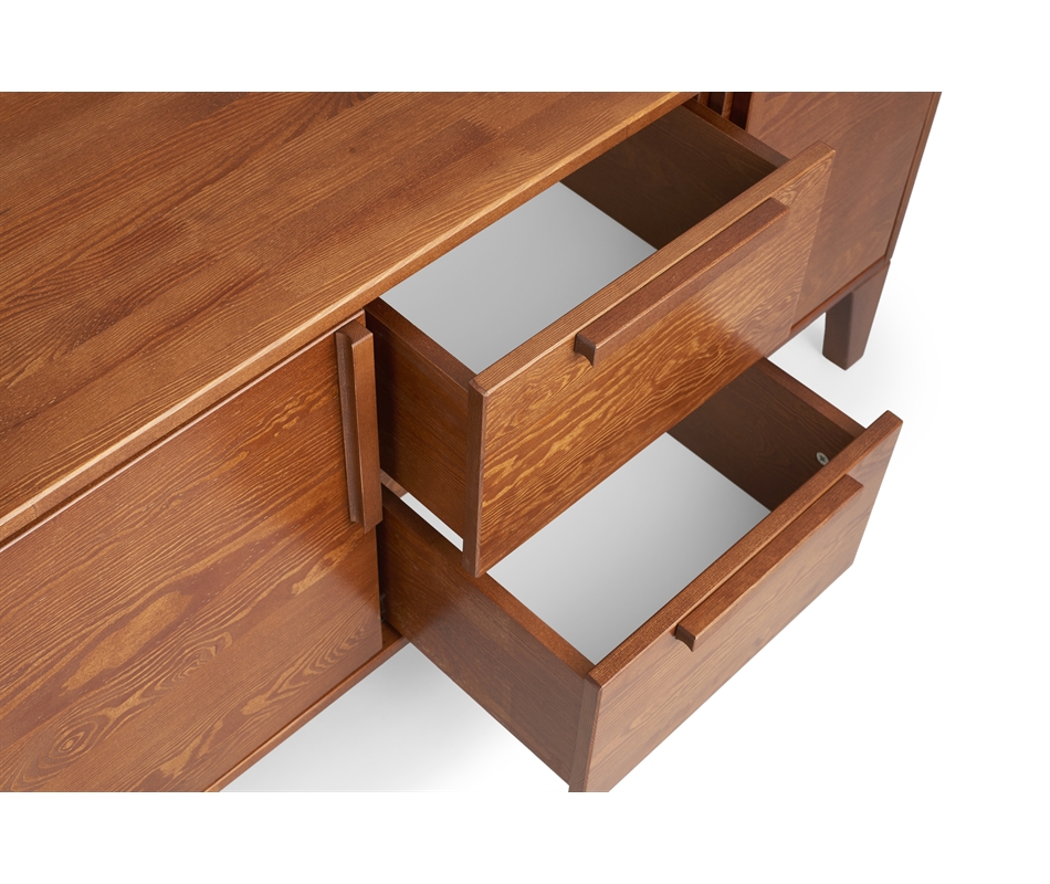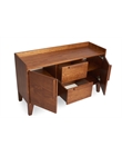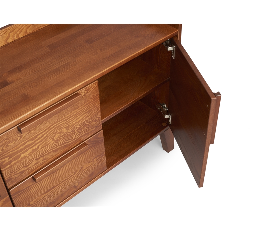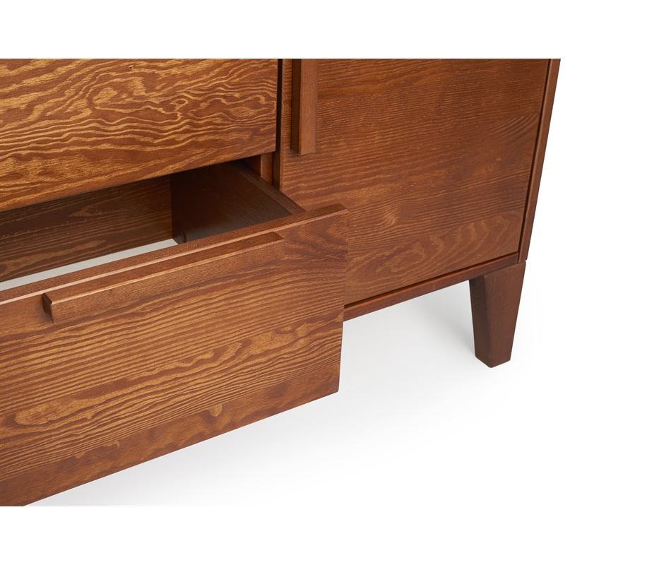 Cassettiera in lamellare di pino massiccio . La tecnica del lamellare permette di eliminare nodi ed impurità, creando un prodotto dall'aspetto quanto più possibile omogeneo e uniforme. Altezza complessiva 72 cm, profondità 40 cm, lunghezza 121 cm. Mobile dipinto con vernici ecologiche. Colori disponibili: naturale, sbiancato, noce, palissandro. Cassettiera con parti metalliche all'interno della struttura. Le guide sono munite di ammortizzatori e sistema di chiusura silenzioso. I pannelli inferi...