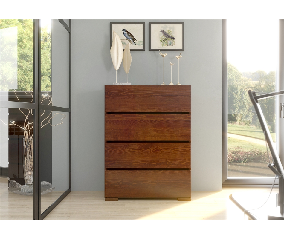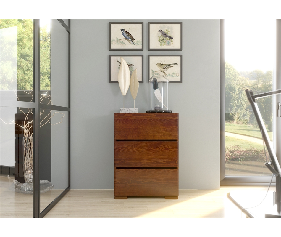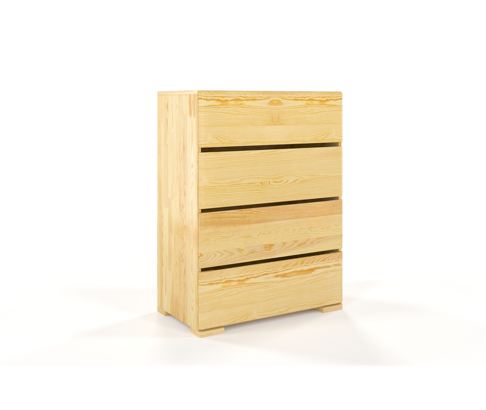 Cassettiera in lamellare di pino massiccio disponibile nella versione con tre o quattro cassetti. Altezza 108/81 cm, larghezza 80 cm, profondità 45 cm.