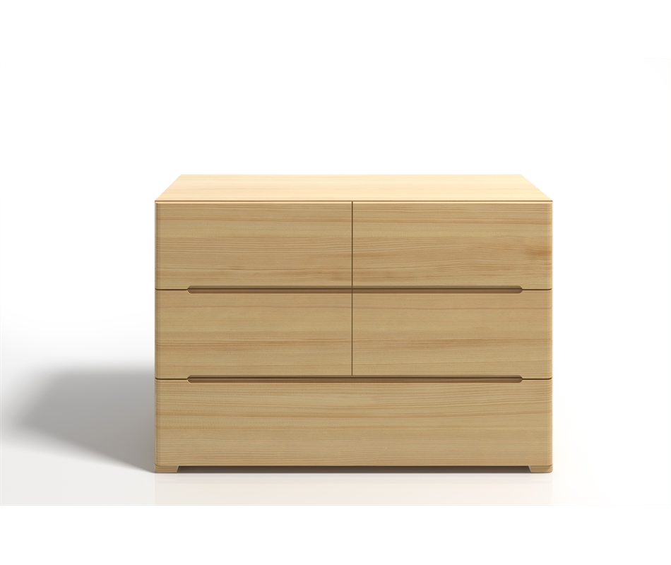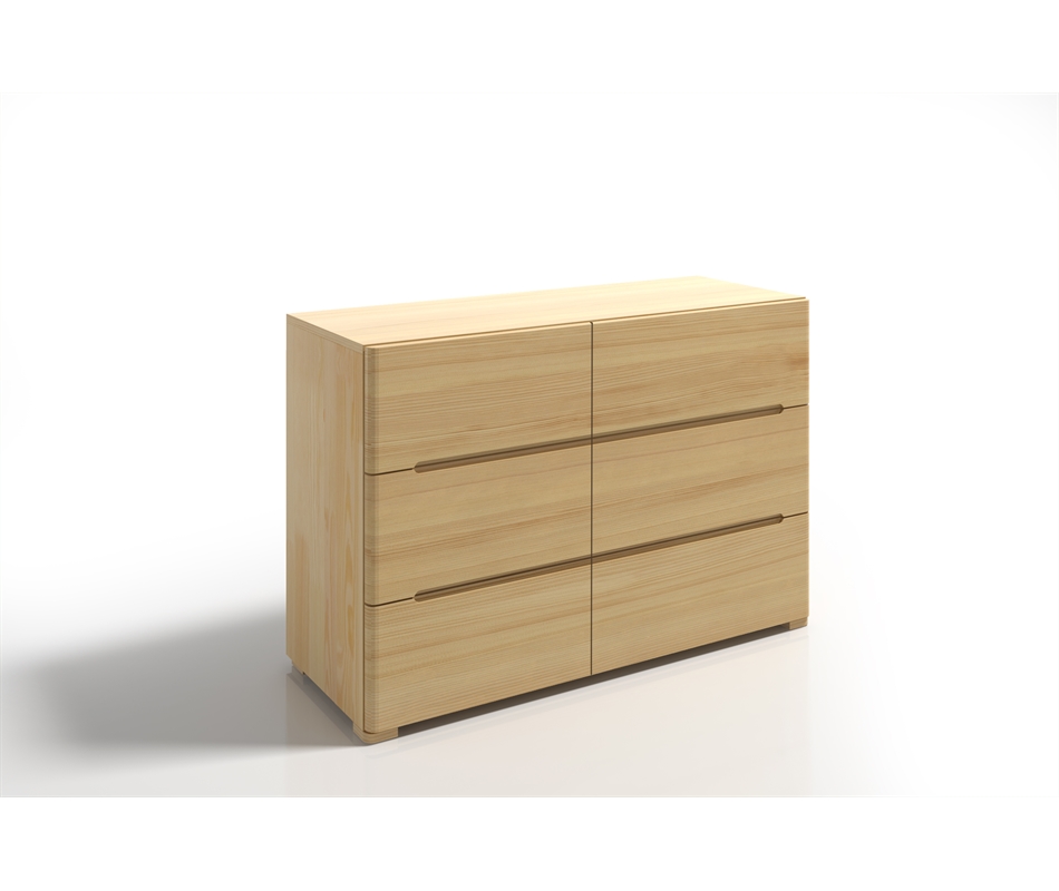 Cassettiera in lamellare di pino massiccio con cinque o sei cassetti. La tecnica del lamellare permette di eliminare nodi ed impurità, creando un prodotto dall'aspetto quanto più possibile omogeneo e uniforme. Altezza 81 cm, larghezza 120 cm, profondità 45 cm. Disponibili anche le versioni con tre o quattro cassetti. Mobile dipinto con vernici ecologiche, è possibile richiedere vari colori: Naturale, Sbiancato, Palissandro e Noce. Sono presenti delle parti metalliche all'interno della struttu...