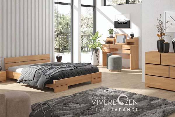 Japandi è la fusione tra l'estetica giapponese e quella scandinava. Entrambe condividono l'idea di mobilio essenziale e funzionale, lo stile giapponese tuttavia predilige colori caldi e avvolgenti, mentre l'arredamento nordico predilige tonalità più fredde con forti contrasti. Anche per i letti di questa linea sono disponibili diverse colorazioni, dallo sbiancato al palissandro. Le due anime dello stile Japandi sono rappresentate in pieno dai materiali adoperati: il pino, e il faggio lamellare.