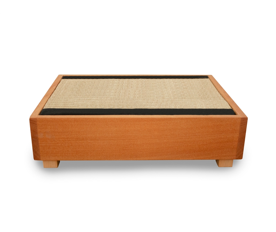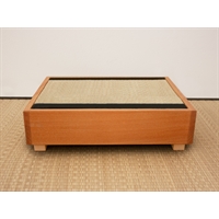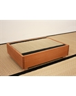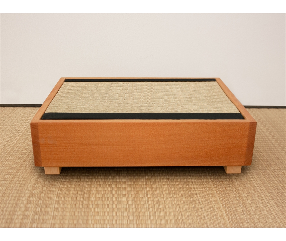 Comodino giapponese Tavolino Tatami in legno massiccio di Okumé finito a olio di lino. La struttura in legno è realizzata interamente in Italia. Il mini tatami poggia su un pannello d'abete. Si adattano come comodino a tutti i nostri tatami oppure ad un letto a pedana basso come il Koro o l'Ikada. I tatami tradizionali sono così composti: interno in paglia di riso pressata e rivestimento di giunco intrecciato. L'altezza complessiva è di 10 cm, i piedini sono di forma cubica 3x3x3 cm