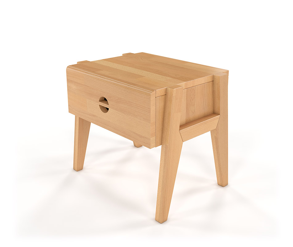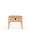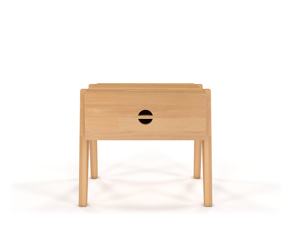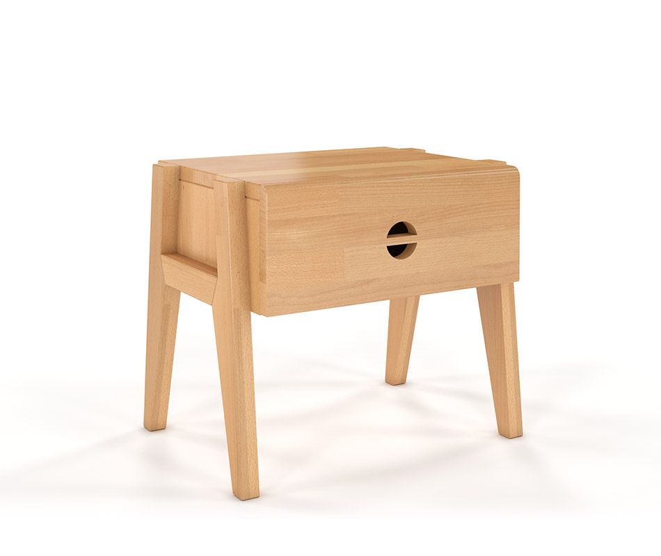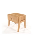 Il comodino Nirvana in lamellare di faggio massiccio è semplice ma elegante.