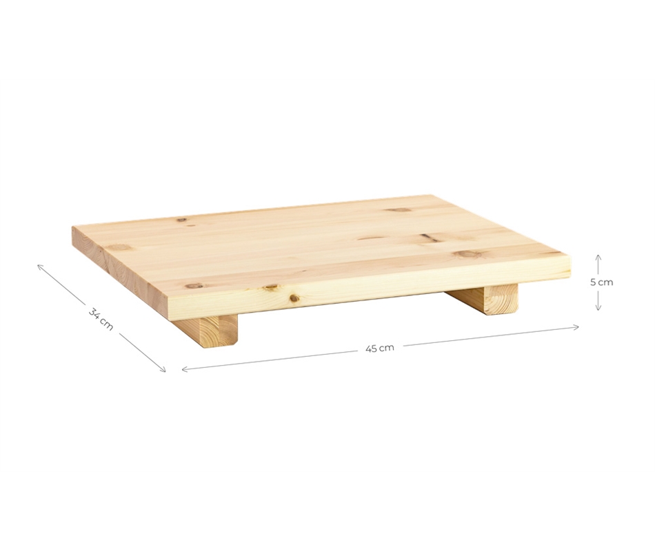 Comodino realizzato in pino scandinavo massiccio misura 45x34 e ha un'altezza di 5 cm.