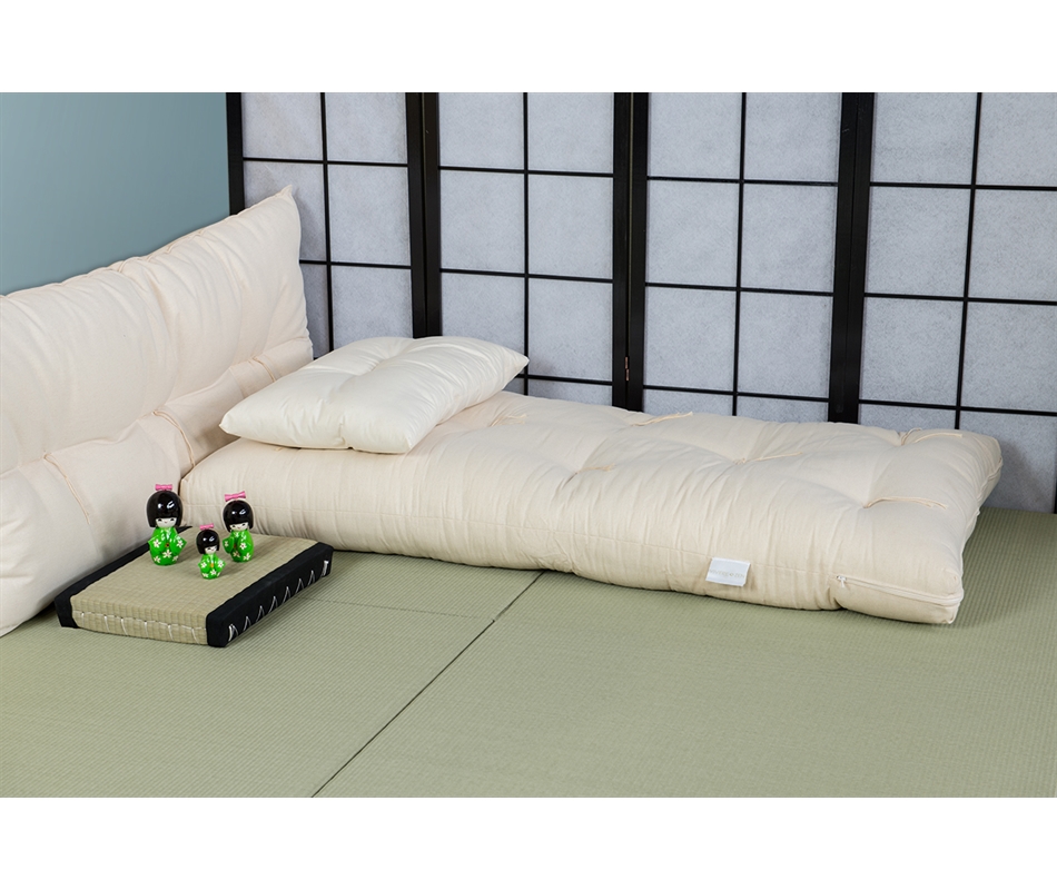 I futon per dormire che trovi nei cataloghi di arredamento biologico occidentali per certi versi sono più simili al vecchio materasso della nonna, con la differenza che invece di essere imbottiti di lana, all’interno hanno invece del cotone cardato. Su Vivere Zen hai la possibilità di scegliere tra cotone e lana a seconda delle tue esigenze. Sono presenti anche altri materiali, come il cocco ed il lattice, che permettono di migliorare le prestazioni del futon e rimodernarlo, lasciando intatte però le sue caratteristiche primarie.