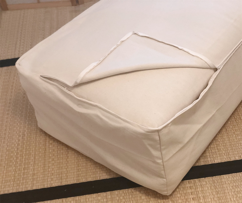 Il sacco è dotato di chiusura con cerniera e racchiude integralmente il futon (anche la parte inferiore).