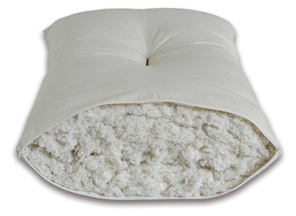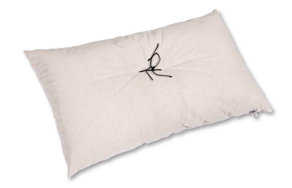 Guanciale per bambini, imbottitura puro cotone, misure 40x60x10 cm. Rivestimento disponibile in due diverse opzioni: cotone greggio 100% oppure cotone bio. Il guanciale non è sfoderabile.