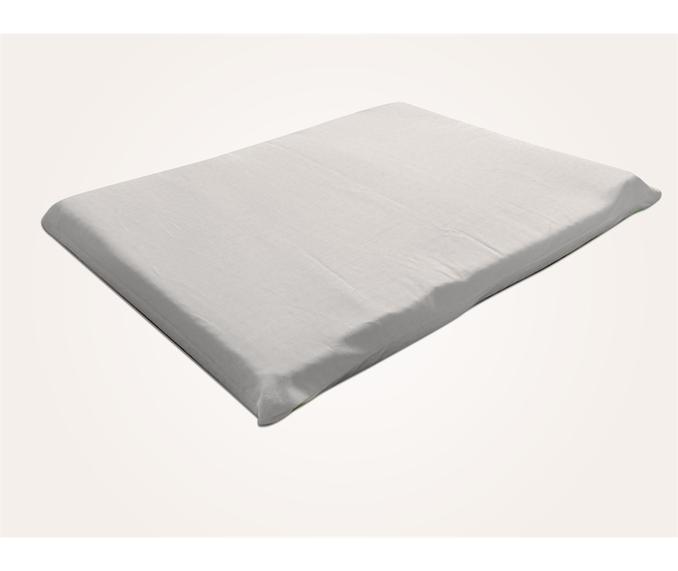 Guanciale per bambini, in lattice talalay, disponibile con rivestimento in puro cotone bio certificato.