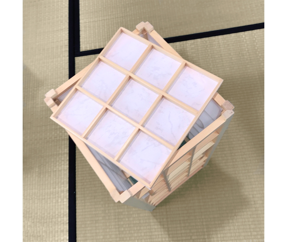 Lampada Giapponese artigianale realizzata in legno di Pino e carta di riso.