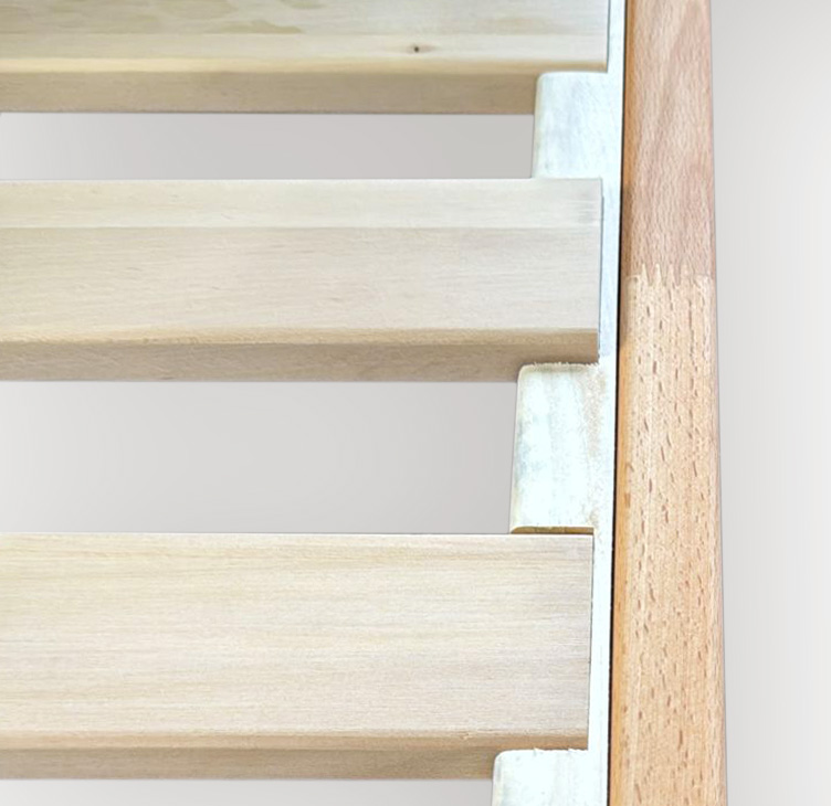 Il letto fornito di doghe ha un incasso del materasso di 2,5 cm.