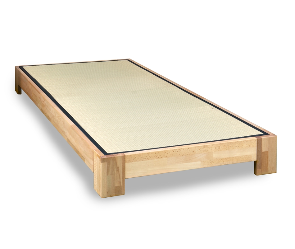 Il letto Sambuco può essere fornito anche in stile giapponese con i tatami come base per il materasso o futon. Il letto ha parti metalliche essenziali.