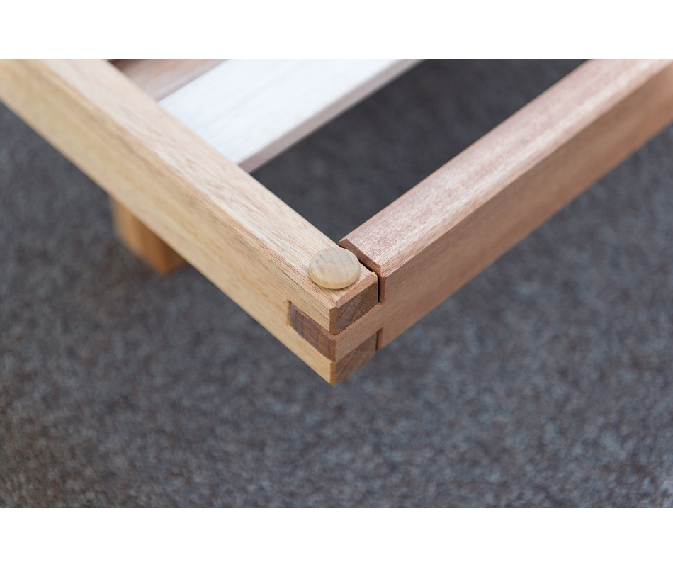 Rete a doghe interamente Bio realizzata in legno di okumè massello, completamente ad incastro. Le dimensioni del profilo in legno sono di 3,5x6,5 cm. La versione da 120 cm è fornita di traversa centrale con un quinto piede di sostegno aggiuntivo. L'incasso delle doghe è a 0,5 cm dal giroletto. Il lettino standard è alto a 20 o 30 cm da terra, ma è possibile richiedere un'altezza inferiore come prodotto personalizzato. Il legno dell'Okumé è molto leggero ed idrorepellente. Il letto Bio Wood è ...