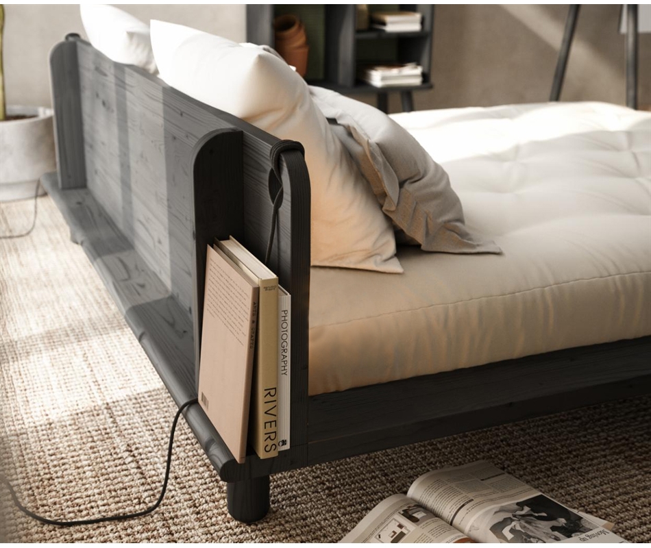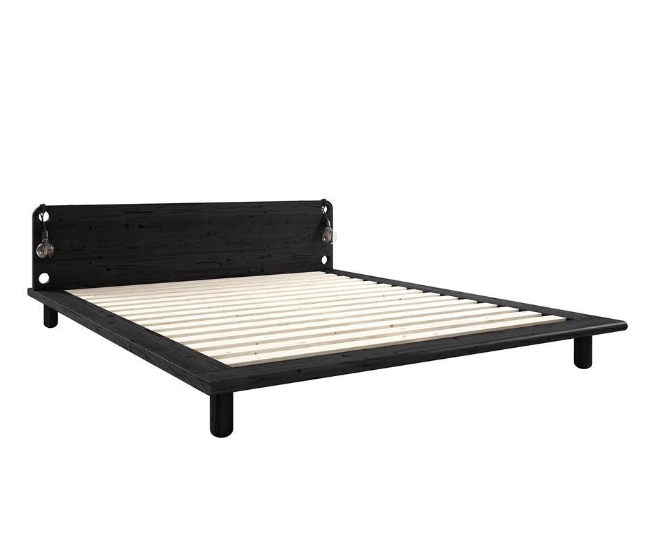 Letto a doghe Peek disponibile in varie dimensioni, da cm 140x200 a cm 180x200, realizzato in pino scandinavo massiccio . Colore nero Il letto Peek ha un design pensato per unire insieme compattezza ed estetica. Grazie ai fori presenti sulla testiera infatti, è possibile fissare delle lampadine e far passare i fili dell'iphone in maniera di avere tutto a portata di mano in maniera semplice e ordinata. E se vuoi un libro per la notte? Non c'è problema: puoi poggiarlo nello spazio apposito diet...