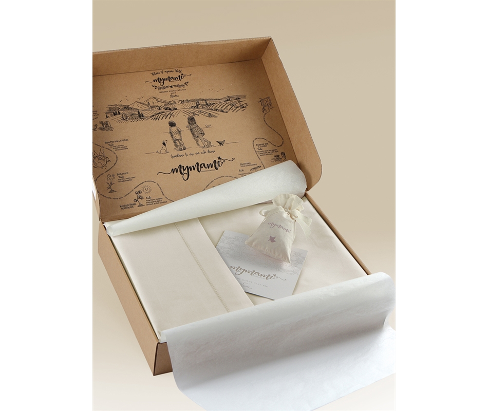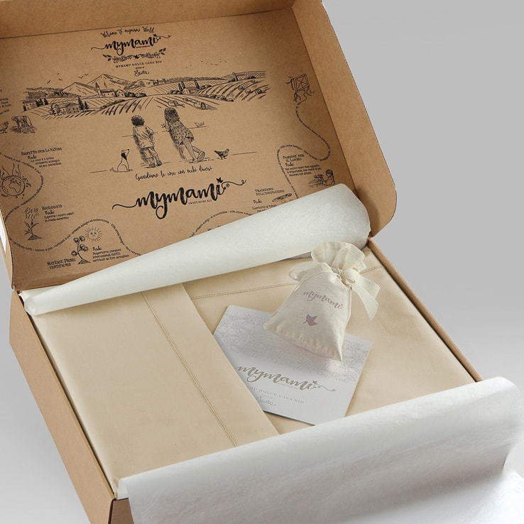 I completi letto Mymami vengono confezionati artigianalmente in percalle, tessuto confortevole e pregiato di medio peso, molto compatto, di mano liscia e realizzato con filati di cotone pettinato