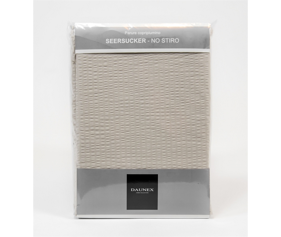 Copripiumino 155x200 + 40 cm patella. Fodera 50x80 inclusa. 100% Cotone no stiro. La lavorazione Seersucker (anche detta gaffrato in italiano) è un tipo di tessitura ad armatura tela, originaria dell'India. E'caratterizzata da un'alternanza di fili tesi, alternati ad altri più allentati, che creano il tipico aspetto rigato e stropicciato della stoffa. Questa tipologia di tessitura ha il vantaggio di non far rimanere il tessuto "appiccicato" alla pelle, facilitando la traspirazione, la dissipaz...