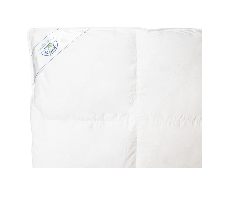 Piumino d'oca, 4 punti di calore, 50% piumino bianco Europa 50% piumette bianche Europa, rivestimento in tessuto di cambric 70 ca. 130 gr/m2 colore bianco, confezione in busta di cotone inclusa.