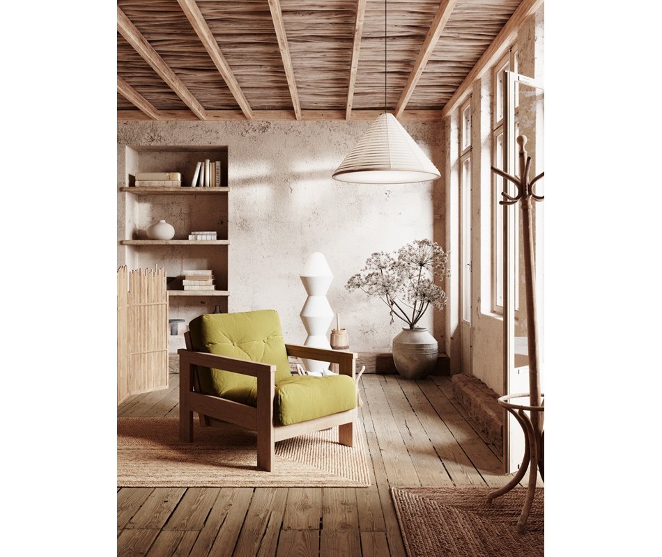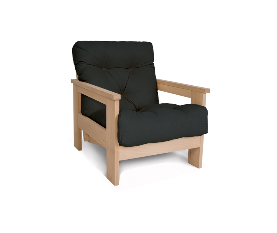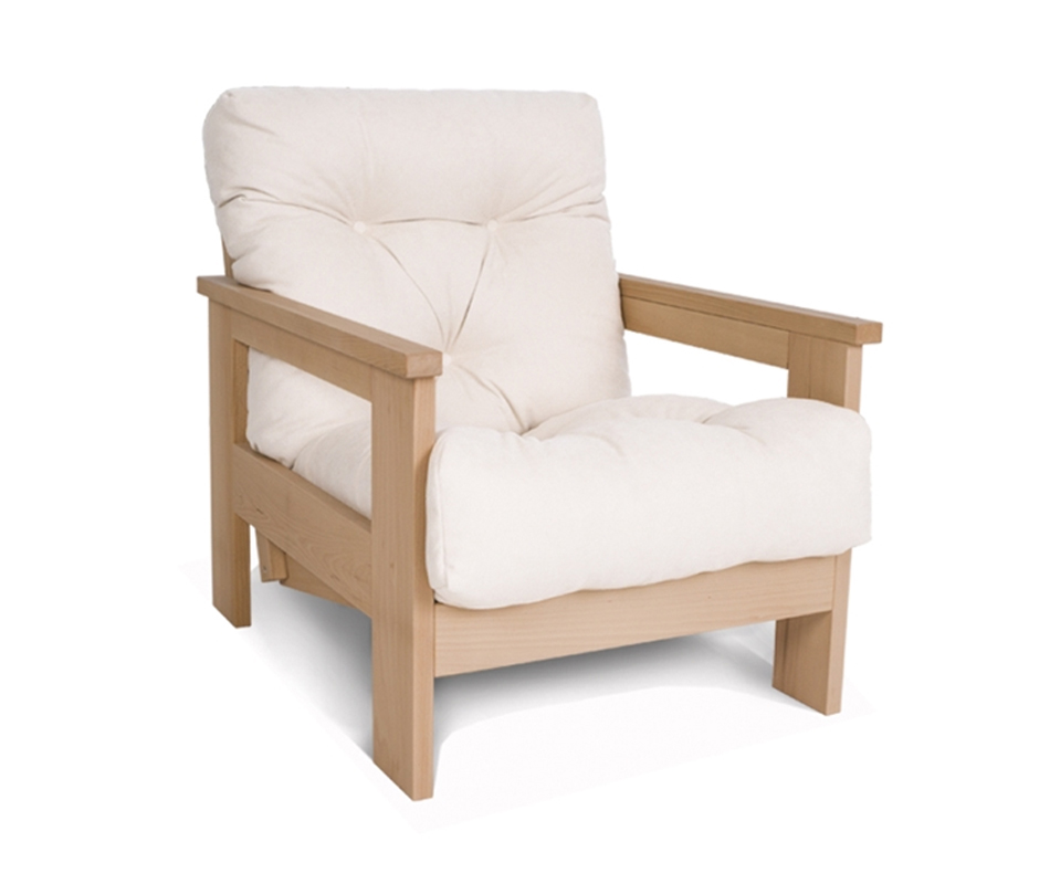 Poltrona reclinabile in legno di faggio. Può essere abbinata al divano o al tavolino Levante. La poltrona è disponibile in finitura naturale o noce, entrambe realizzate con olio di lino, oppure non trattata. Struttura in legno di produzione europea, futon Viverezen realizzato in Italia. Futon 70x140 alto 10cm in cotone con inserto in polilatex. Il rivestimento in cotone 100% può essere in greggio o in varie tonalità di colore. La trapuntatura del futon è ottenuta tramite laccetti e non botton...