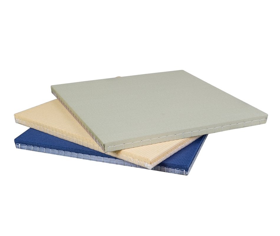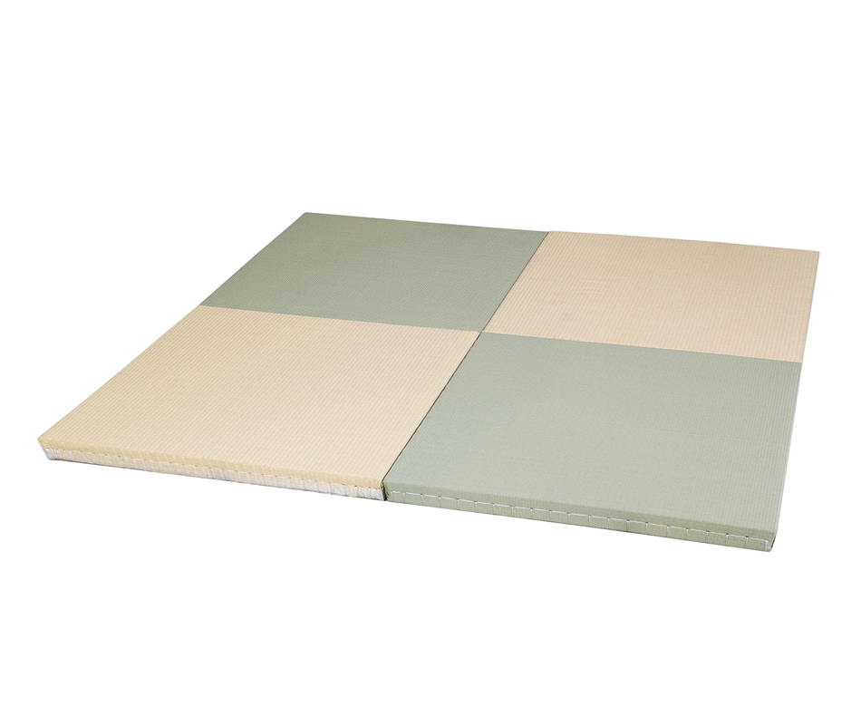 I tatami quadrati senza bordo sono così composti: interno fibra di carta pressata + foam e rivestimento di carta di riso intrecciato.