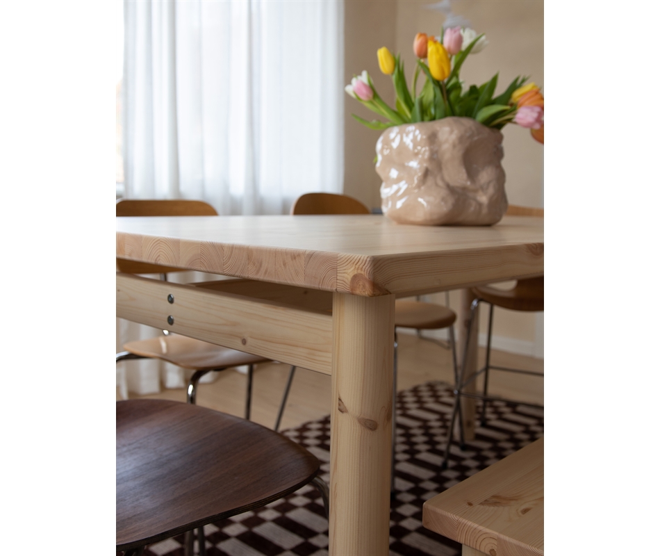 Tavolo da pranzo per quattro persone, realizzato in pino scandinavo massiccio con altezza 75 cm. Le forme semplici e geometriche si combinano all'aspetto rustico e nodoso del legno di pino. La struttura leggera e poco ingombrante è perfetta per una cucina o un piccolo appartamento. Si abbina facilmente alla panca Pace, realizzata nello stesso design. Verniciato con un rivestimento laccato all'acqua , è disponibile nella colorazione Naturale . All’interno troverai il libretto di istruzioni...